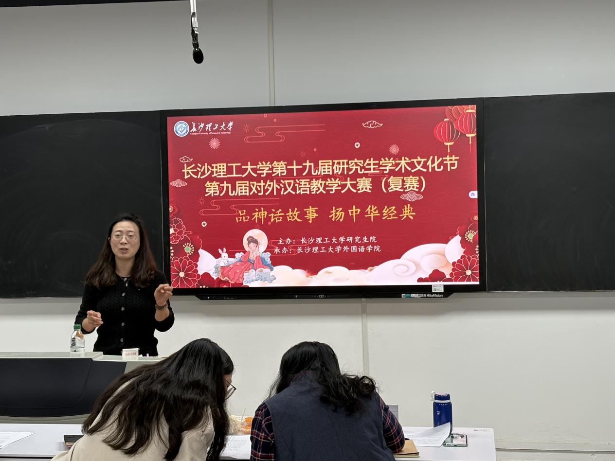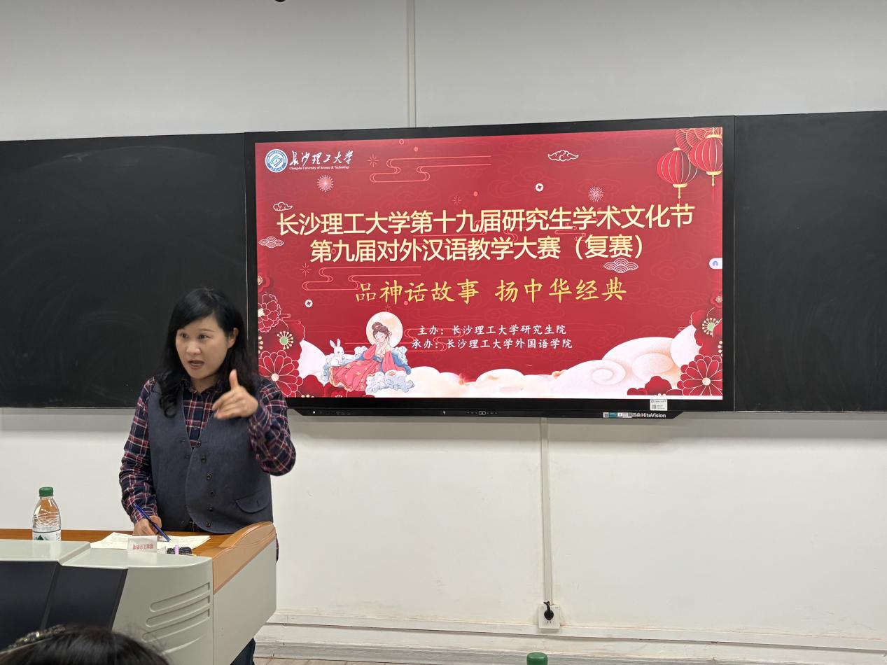 参赛同学依次登台,每位选手享有10分钟的宝贵时间展示教学风采。大赛评委从教学内容、课堂设计和教学仪态三个方面对选手的参赛表现进行评分。比赛中,参赛选手们热情洋溢,以各具特色的教学风格,模拟出充满活力的汉语课堂,令人耳目一新。从神农尝百草的古老传说到盘古开天地的创世神话,从女娲补天的壮丽史诗到嫦娥奔月的浪漫传说,教学主题丰富多元,引人入胜。选手们将汉语基础知识与中国神话传说巧妙融合,精心构建了教学内容,通过生动的讲述、精彩的解析、有趣的互动,充分彰显了汉语教学的魅力。
