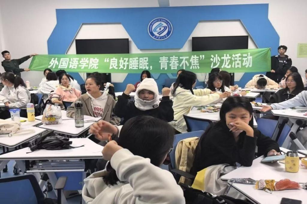 为响应世界精神卫生日号召,切实改善大学生睡眠困扰,在线买世界杯平台外国语学院朋辈心理互助部以“解密睡眠密码”为主题于2025年10月30日晚19:00在3教414开展了沙龙活动,活动收获了同学们的积极响应,学院共有40名学生报名参与。