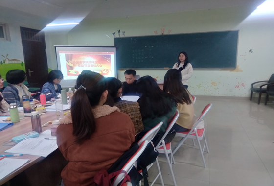 2019年12月10日晚七点半,外国语学院本科生党支部在长文科楼A503召开本学期预备党员接收大会。大会由本科生支部书记王婷婷同志主持,本科生党支部全体成员应到24人,实到23人,1人因病请假。全体拟接收对象参加,外国语学院党委副书记刘坚、陈仁凯书记、党建辅导员肖雅兰出席。