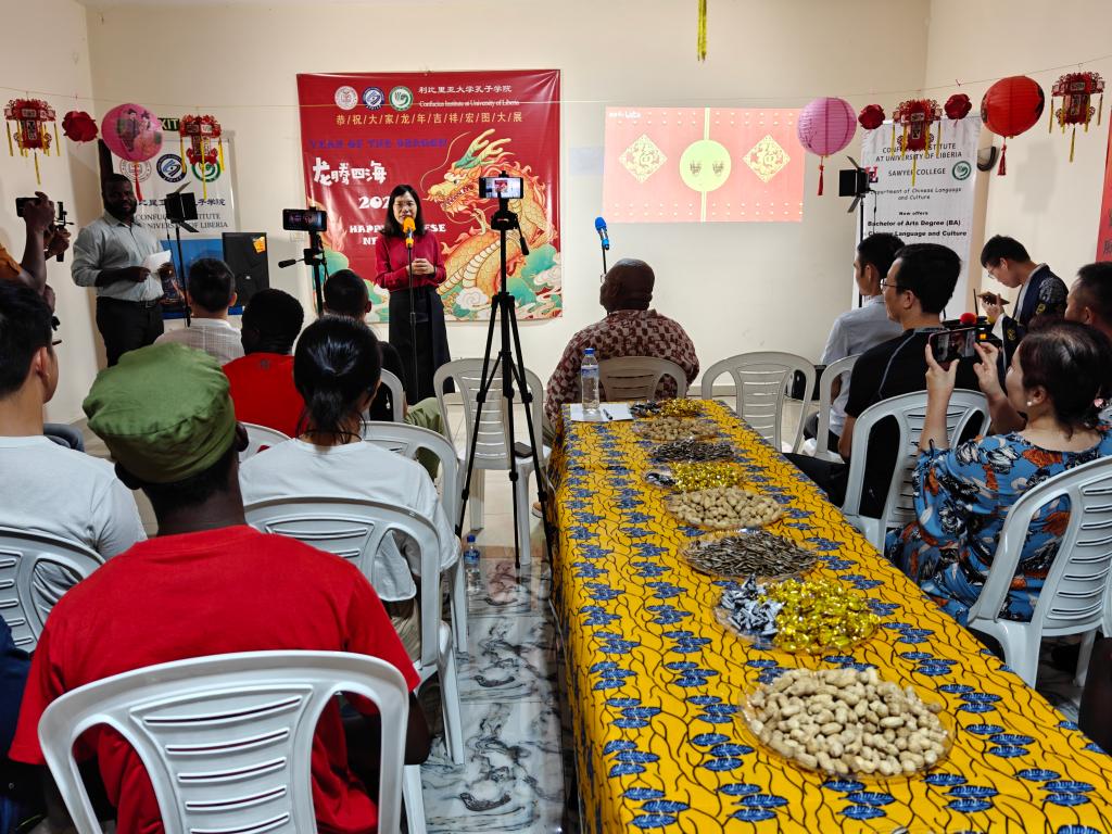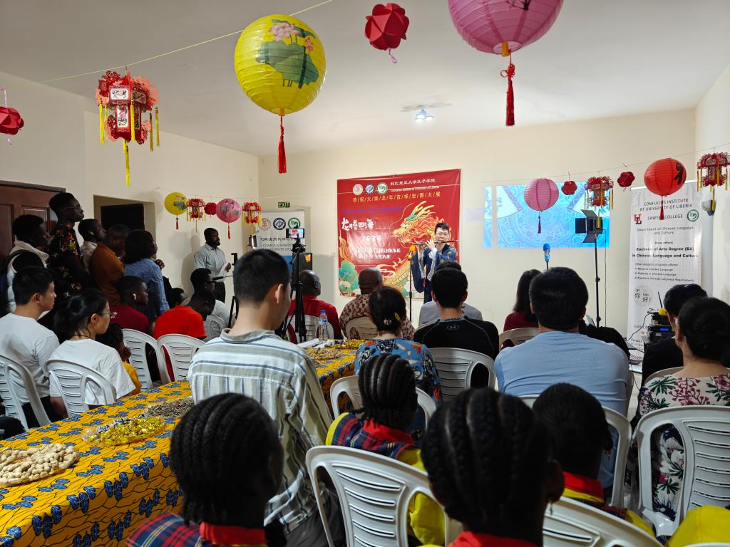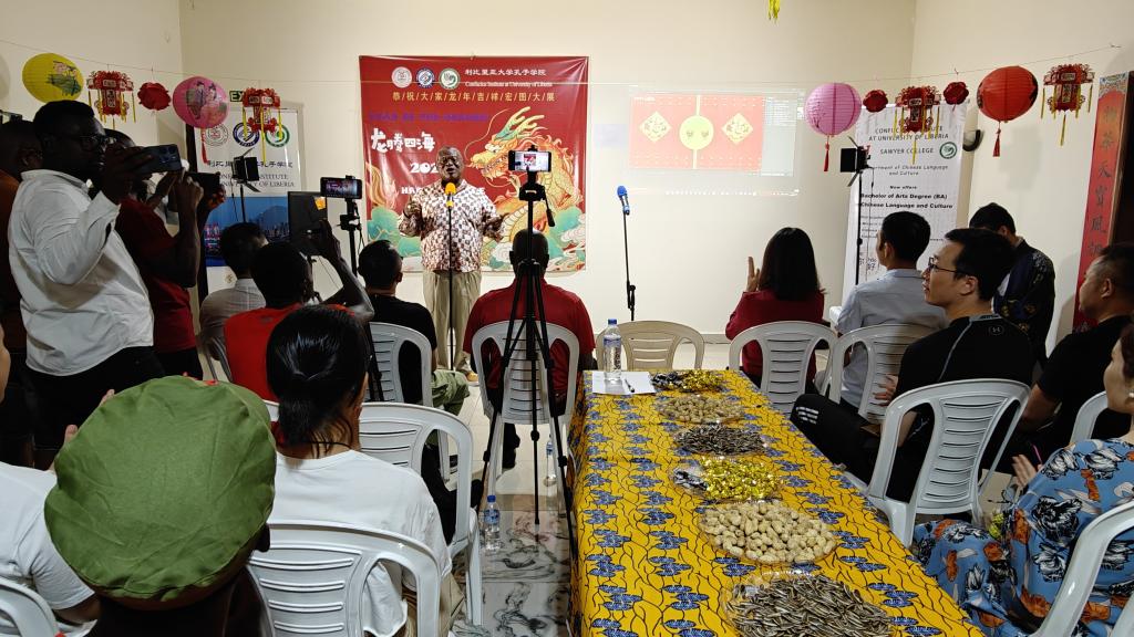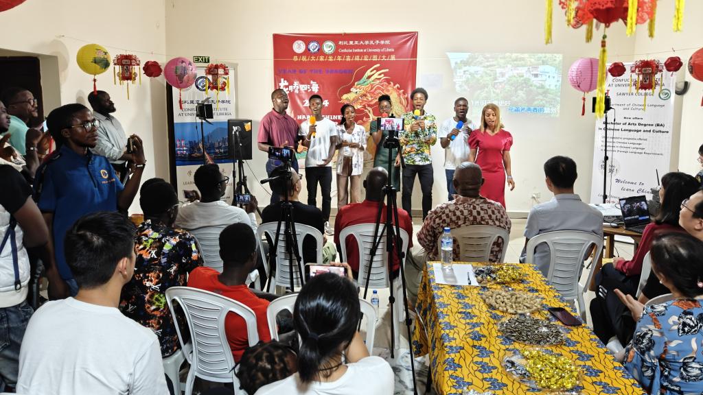 2024年2月3日,利比里亚大学孔子学院在中方教师驻地举办了一场热闹非凡的春节联欢会。此次联欢会邀请和吸引了援利医疗队、中资机构代表、众多师生、以及利国中文爱好者们的热情参与,大家欢聚一堂,共同庆祝2024中国农历新年的到来。利大校长代表Seah先生及孔子学院外方院长Sumo、中方院长周红专先后发表了热情洋溢的致辞。利比里亚多家著名电视、广播及主流网络媒体对本次春节联欢会进行了全程直播或新闻报道。