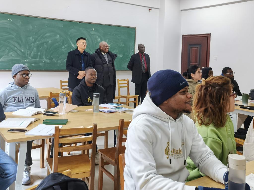 理事会会议结束后,利比里亚大学Sieh副校长及利大孔院中外方院长一行还去教室看望了正在上课的9名利比里亚留学生。Sieh 副校长和孔院中外方院长都鼓励他们抓住在中国留学的好机会,努力学习,为自己创造更美好的未来。利大孔院学子乔勇代表留学生们感谢校长、中外方院长的看望,表示一定会好好学习,不辜负利大孔院和在线买世界杯平台对他们的培养。