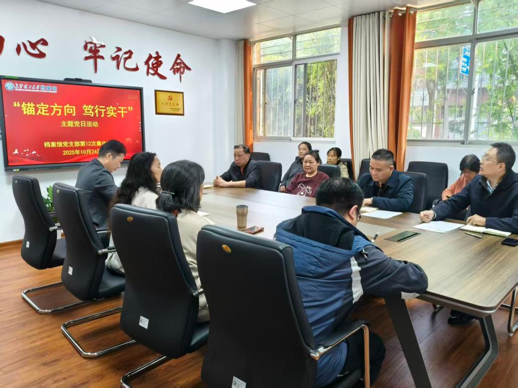 1024日,档案馆党支部组织开展了“锚定方向 笃行实干”主题党日活动(二),会议由支部副书记王任飞主持,档案馆全体教职工参加。