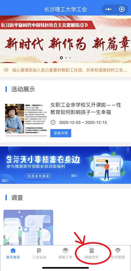 第二步:点击菜单栏中“我的工会”按钮,进入长沙理工工会小程序