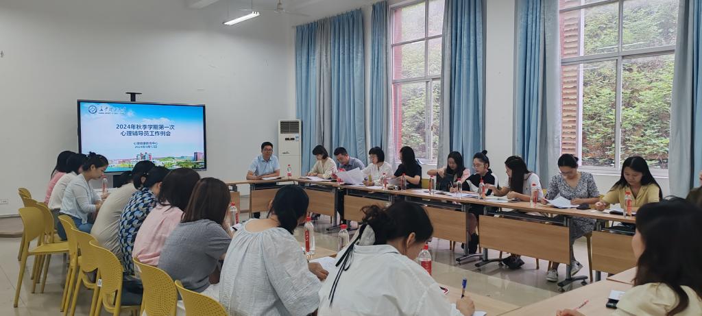 9月12日上午,世界杯官网2024年秋季学期第一次心理辅导员例会在学生活动205召开,会议由学工部副部长陶传谱主持,中心专职教师及学院心理辅导员参加会议。