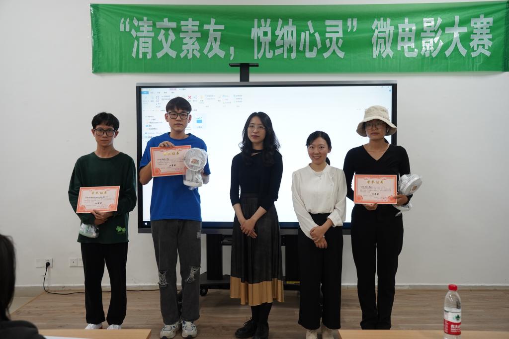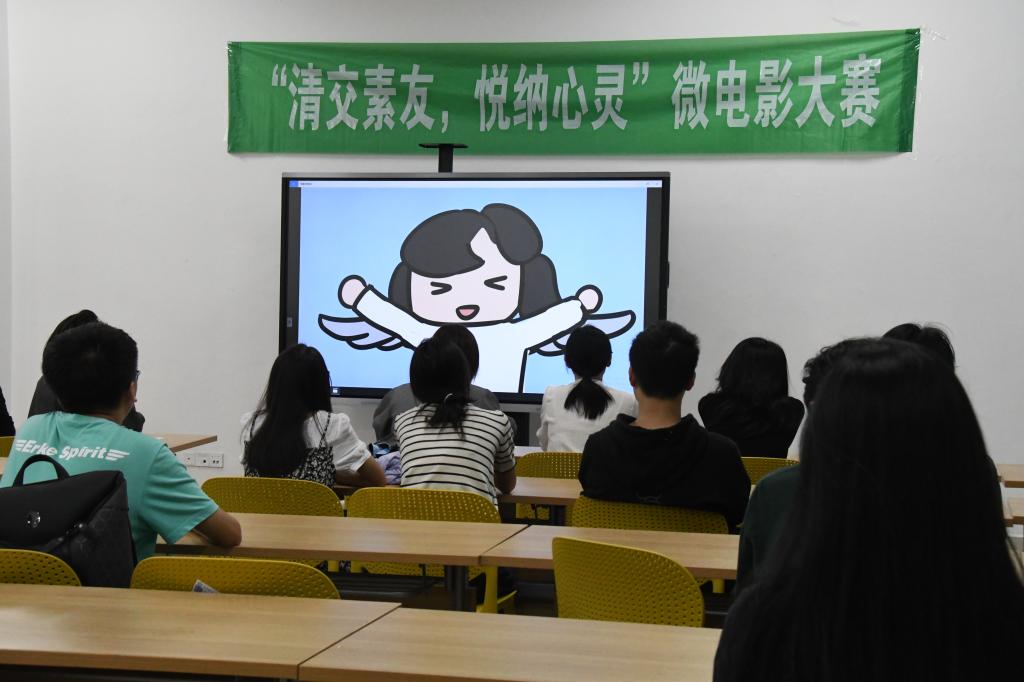 本次决赛共有全校各学院15组作品入围,决赛现场分为作品介绍、视频播放、颁奖典礼三个部分。在主持人的引导下,参赛选手轮流上台,讲述自己的创作灵感和创作时的想法,随后展示自己的作品。参赛视频紧扣“清交素友,悦纳心灵”这一主题,通过展示大学生宿舍人际关系、班级人际关系、师生关系、亲密关系、亲子关系等内容,展现大学生在人际交往和情绪管理等方面遇到的心理困惑以及解决方法,内容紧贴大学生学习生活实际,形式新颖活泼,给人带来启发和思考。