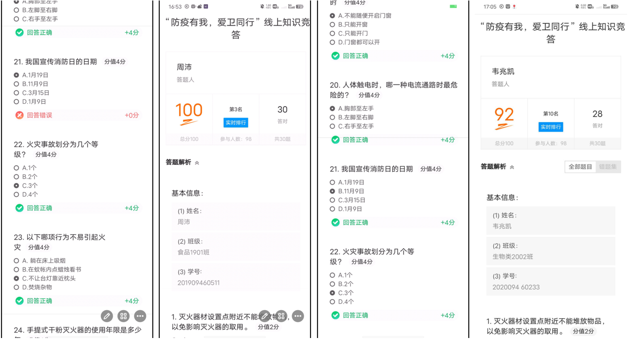 本次文明寝室创建活动主要分为“寝室创意视音大赛”,“线上寝室知识竞赛”,“寝室内务21天打卡”三个部分。在寝室创意视音大赛中,同学们以寝室为单位,创作内容结合疫情防控、寝室消防安全、心理健康等多个方面,同学们创作积极性较高。线上寝室知识竞赛内容包括疫情防控、寝室安全等多方面,通过本次知识竞赛,不仅提高了学生对安全事故的警惕性和防范能力,而且宣传普及了宿舍安全知识,推广了宿舍安全教育。