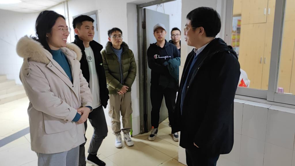 12月31日晚,副校长钱国平带领学生工作部(处)、研究生院、保卫处、校团委相关工作人员深入学生宿舍,与学生共迎新年。
