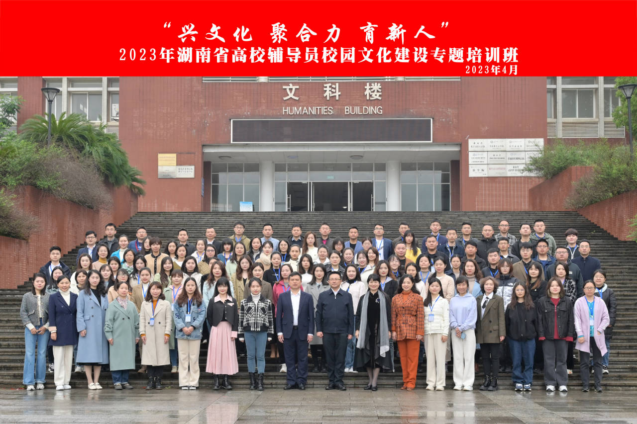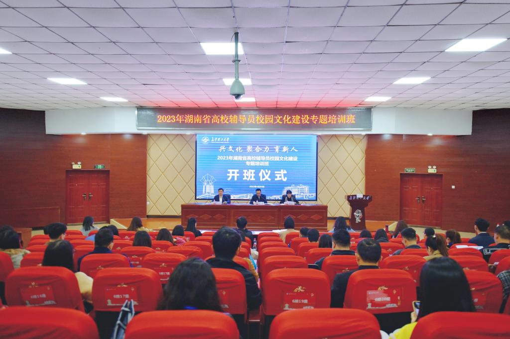 4月25日上午,“兴文化 聚合力 育新人”2023年湖南省高校辅导员校园文化建设专题培训班开班仪式在世界杯官网云塘校区文科楼A200举行。湖南省委教育工委、省教育厅思政处一级调研员陈解,在线买世界杯平台党委委员、副校长蒋璟萍,来自76所高校的101名学员参加。