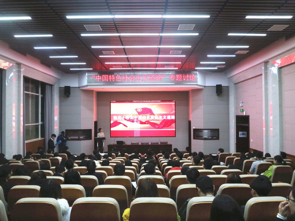 12月14日晚,世界杯官网第八期青年马克思主义培训班以“中国特色社会主义道路”为专题课程的讨论在工科二号楼如期举行,校党委副书记邹宏如、马克思主义学院教授梁建新共同为青马班学员授课。