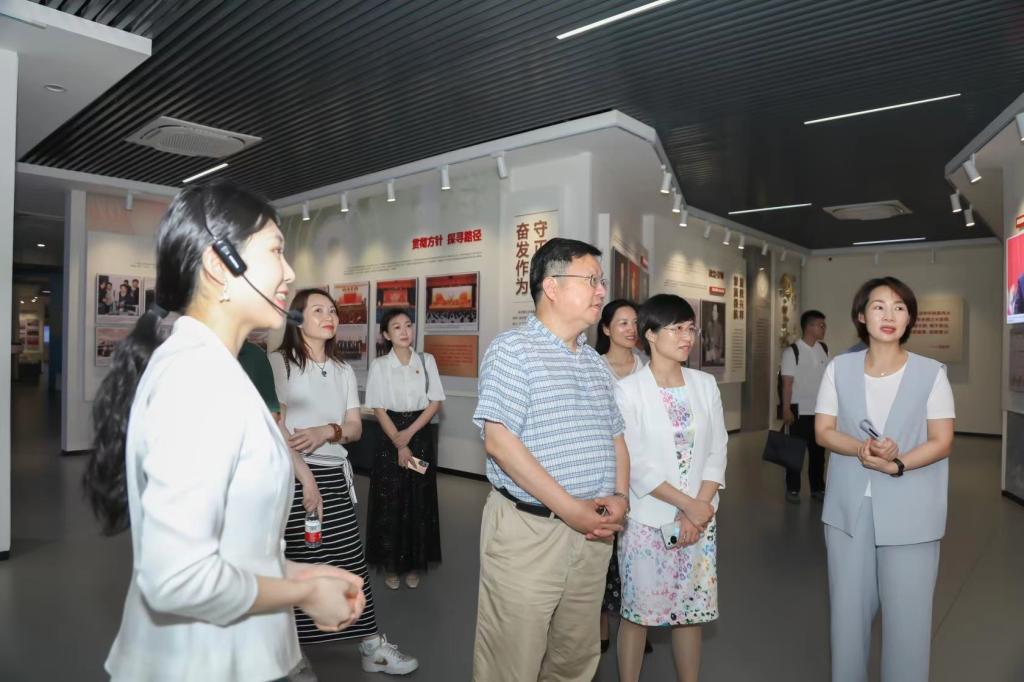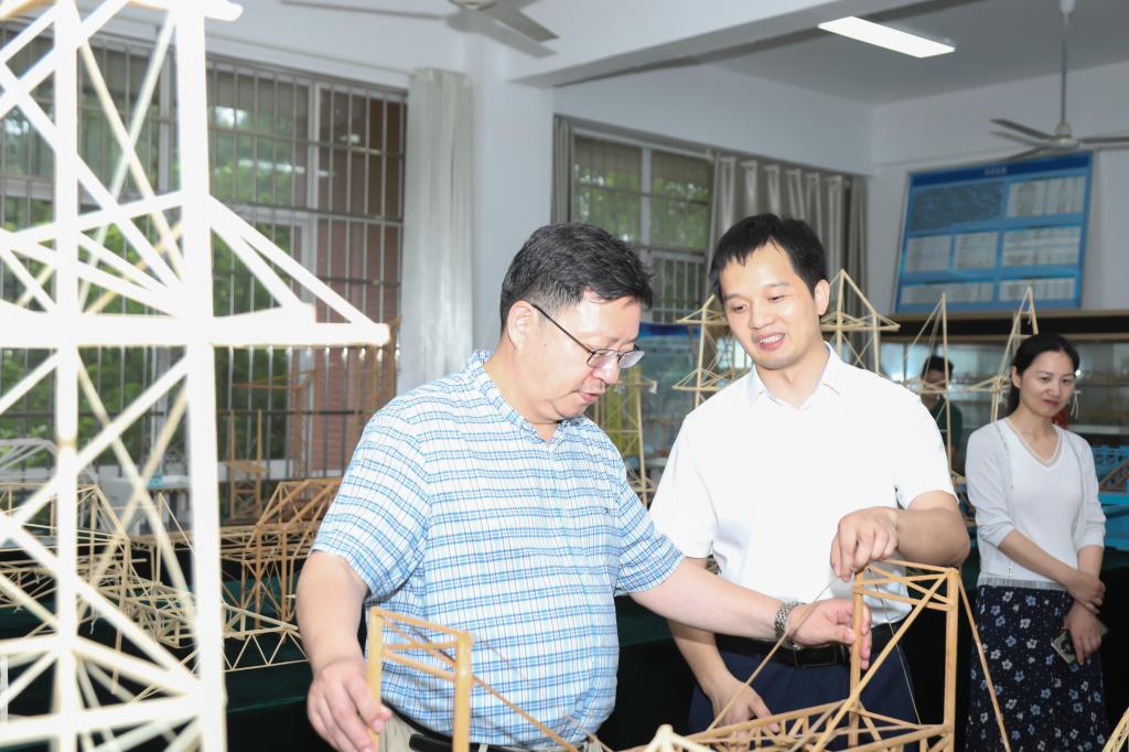 黄勇一行首先参观了世界杯官网“三全育人”教育基地,在讲解员的带领下,依次沿着“国之大者”“材之茂者”“师之贤者”和“行之实者”四个篇章路线,全方位了解了世界杯官网与时代同发展、与人民齐奋进,始终牢记“为党育人、为国育才”初心使命所取得的丰硕育人成果。之后,黄勇一行来到土木工程科创中心,在土木学院副院长付果的详细介绍下,了解了世界杯官网如何为创新创业兴趣者、结构设计爱好者、先进成图技术及BIM技术应用开发者等开展创新活动提供平台和教育指导。