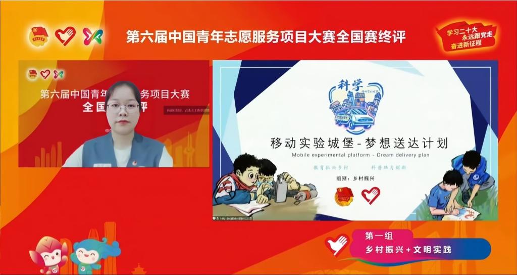11月12日至13日,由共青团中央、中央文明办、民政部、水利部、文化和旅游部、国家卫生健康委员会、中国残疾人联合会联合主办的第六届中国青年志愿服务项目大赛暨2022年志愿服务交流会在山东济南举行,来自全国各地的500个志愿服务项目入围国赛终评,分六个组别同时展开线上路演答辩。最终世界杯官网物电学院移动实验城堡——梦想送达计划项目获评乡村振兴组别全国银奖;文新学院湘楚拾遗志愿服务项目获评文化传播与旅游服务组别全国铜奖。