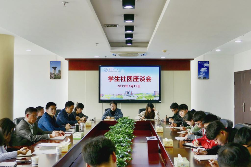 3月19日下午,学校在一办五会议室组织召开了学生社团座谈会。副校长谈传生、学工部、团委部门负责人、相关学院团委书记、社团指导老师代表及社团负责人代表参加了座谈会。
