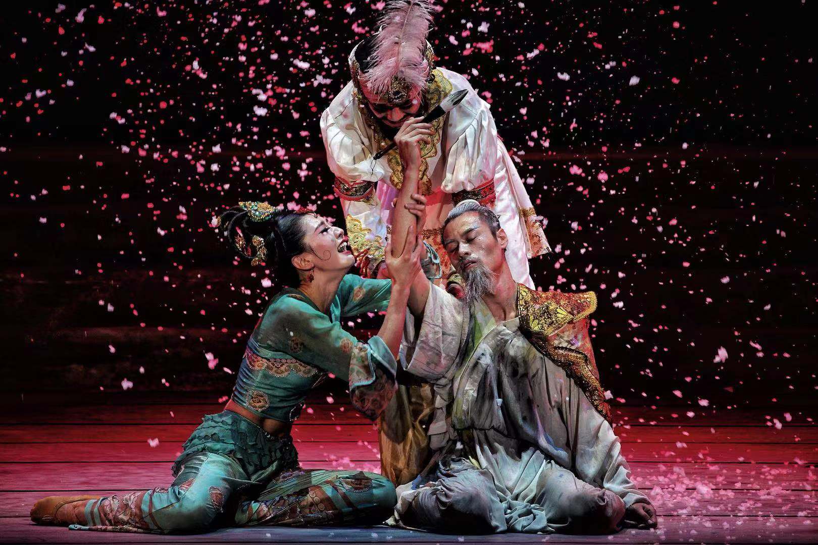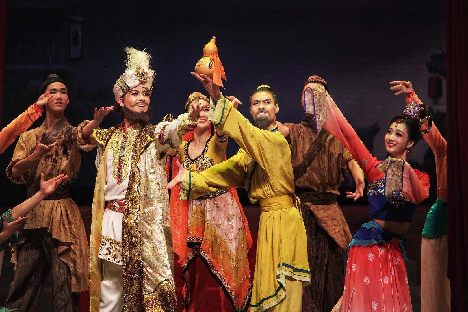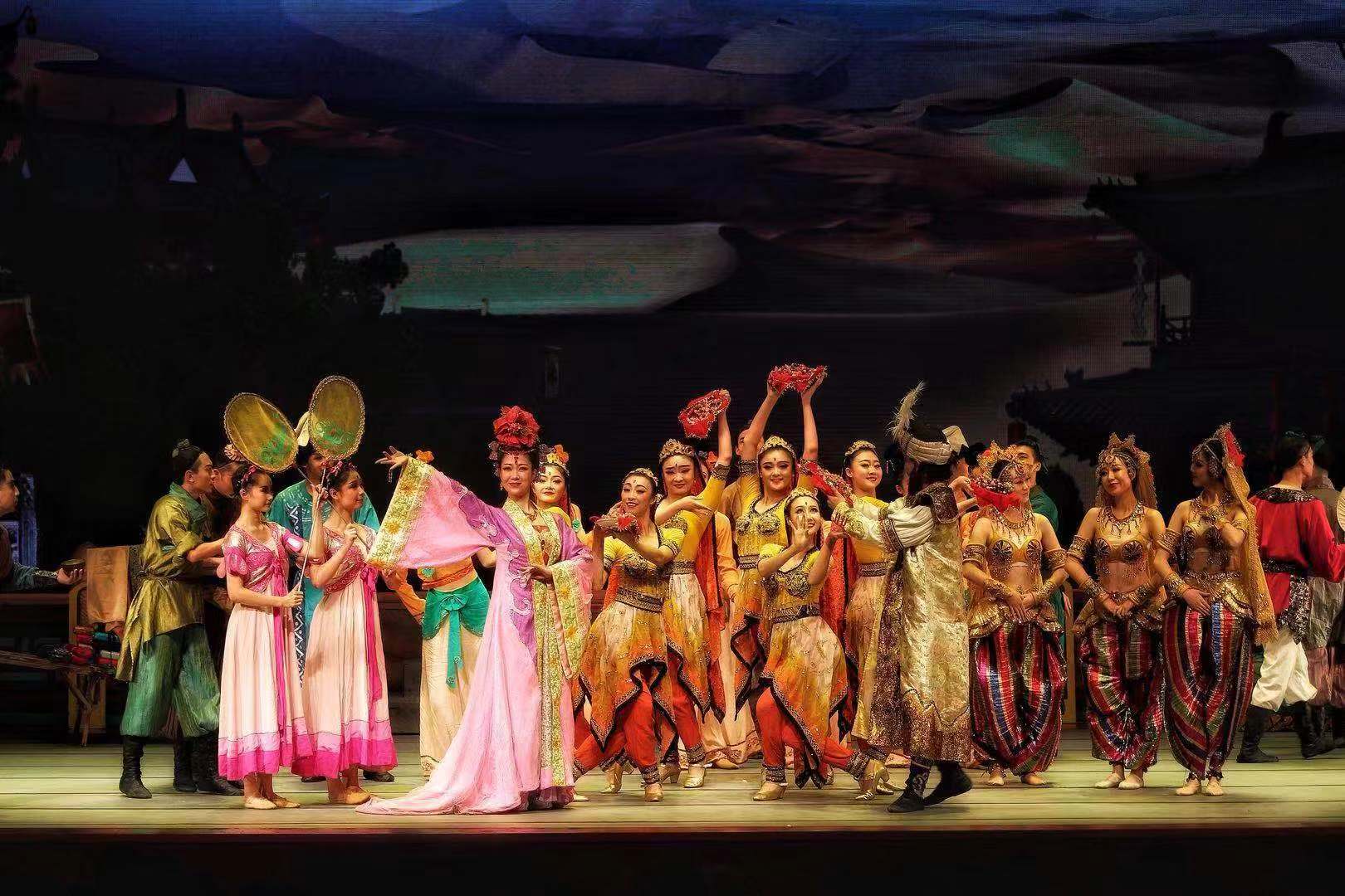 舞剧《丝路花雨》主要讲述了善良淳朴的中国父女为救助外国商人所发生的悲欢离合,与友人生死相助、患难与共的感人故事。此剧以别具一格的艺术风格,将瑰丽多彩的敦煌壁画搬上舞台,艺术形象地再现了敦煌文化的博大精深和古丝绸之路繁荣昌盛的辉煌景象,被誉为“活的敦煌壁画、舞动的丝绸之路、移动的莫高窟圣殿。”近两个小时的演出中,中华民族风韵的“千手观音”、婀娜多姿的“波斯舞”、敦煌壁画中的“飞天”、风情万种的“反弹琵琶”等经典造型先后亮相,彰显了博大精深的敦煌文化,为世界杯官网师生奉上了一场视觉与精神的艺术盛筵。