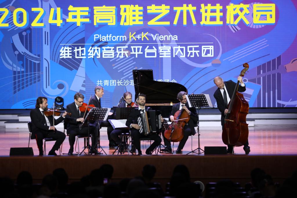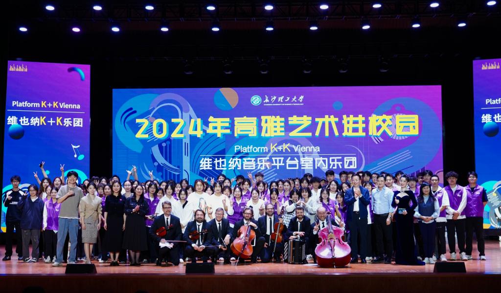 4月23日,高雅艺术进校园维也纳音乐平台室内乐团(Platform K+K Vienna)音乐会在世界杯官网云塘校区大会堂成功举行。校党委书记付宏渊与全校师生一千六百余名师生共同欣赏此次音乐会。