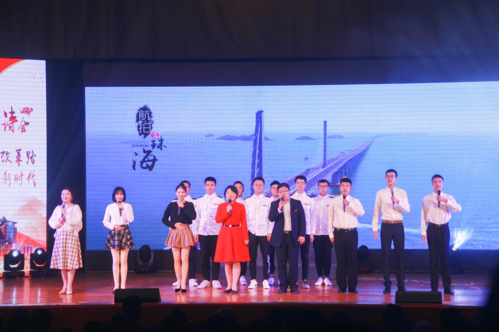 “我在等一阵风来/在等它拨开盘踞在天边的阴霾…”诗会在外国语学院的《等风来》中拉开了序幕,回顾改革开放之路的艰辛;土木学院《龙起遨程》领略了龙翔九天披荆斩棘的归途,亦让我们听到了祖国锦绣山河的梦想,一品心中的感慨与豪迈;交通学院《改革开放路,大道行思远》一路前行,展示了交通青年奋勇前行的魄力;艺术学院《在路上》让我们肩负光荣使命,怀揣梦想携手向前;化学学院《大道至简,光荣之路》向我们展示了一条中国特色社会主义的光荣之路;汽机学院《初心》不忘初心牢记使命,为实现祖国富强而努力奋斗。