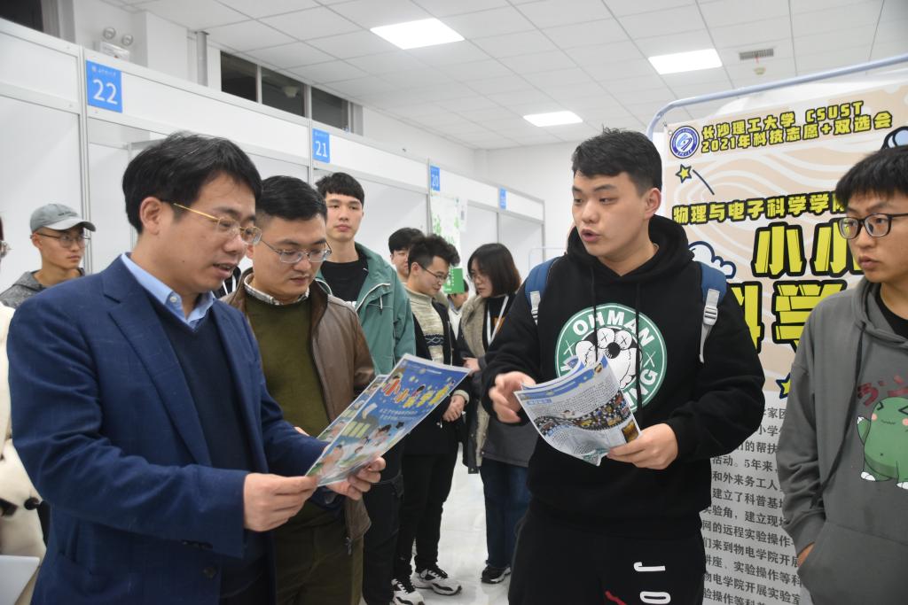 活动以科技实践团队和在校学生为主体,通过现场交流等方式进行双向选择。双选会上,45支科技创新团队借助视频、实物、海报等,从研究方向、科研进展、指导规划等方面介绍团队情况及招聘需求。学生们踊跃自荐,并就志愿服务意向、科创规划等问题与团队负责人深入交流。不少学生在双选会现场“配对”成功,加入自己感兴趣的团队。为保证科创团队与创新人才精准对接,会前,校团委向各学院征集了科创团队数量及招募对象需求等信息,并向全校学生发布。此次双选会的举办,旨在进一步探索大学生科技发明、创业实践、志愿服务活动的长效机制,扩大大学生科技发明、创业实践、志愿服务活动参与度,让不同兴趣群体的大学生找到共同爱好的团体,让大学生科技创新从设想变为行动,让大学生的专业实践更好的服务社会。