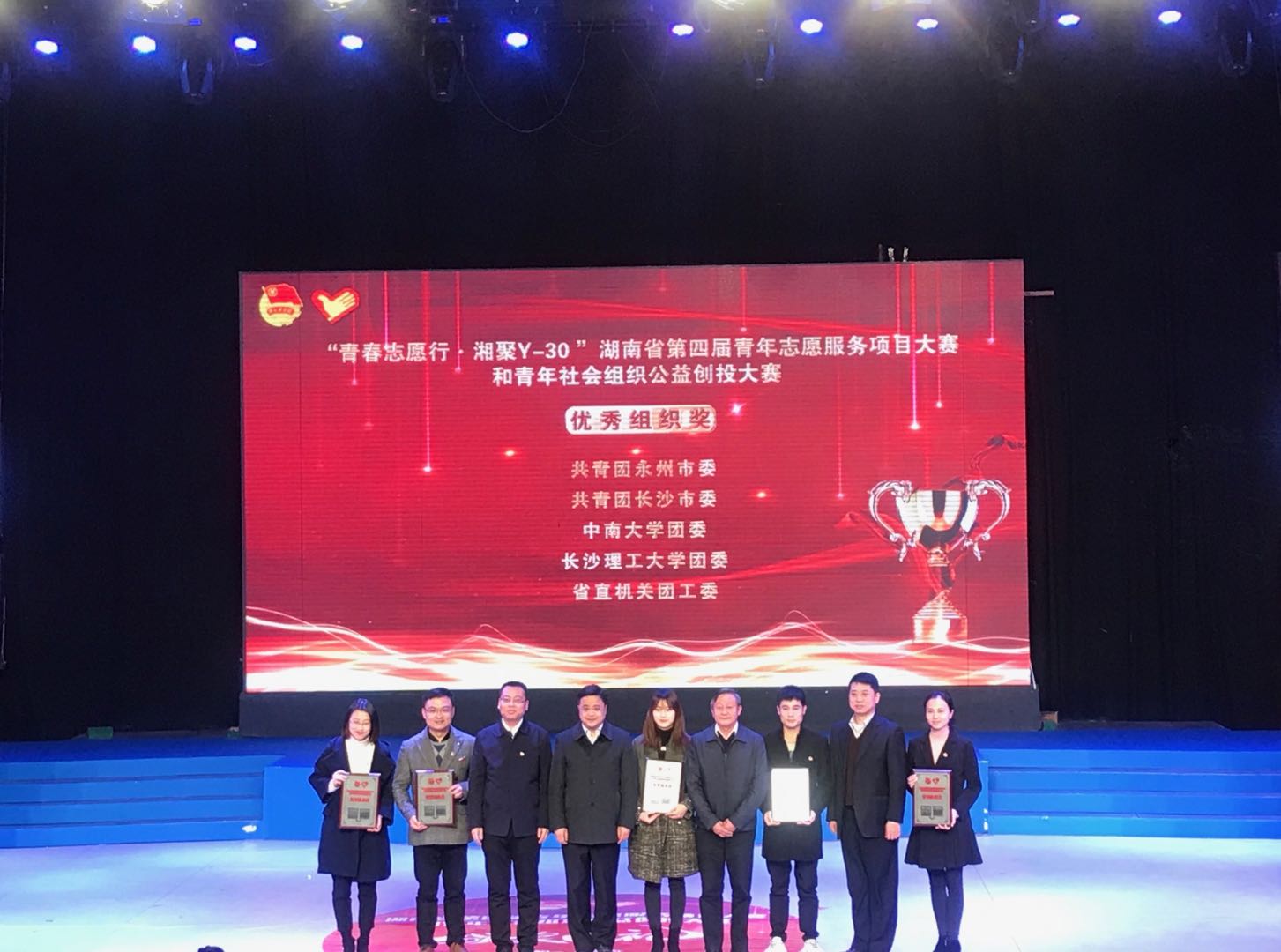 11月26-28日,由团省委联合文明办、省志工办等16个单位共同举办的以“青春志愿行·湘聚Y-30”为主题的湖南省第四届青年志愿服务项目大赛和青年社会组织公益创投大赛在湖南永州举行,经过网络评审、现场展示、专家问辩等环节的激烈角逐,世界杯官网获金奖4项,银奖7项,铜奖4项,同时我们同省直机关团工委、永州市团市委、长沙市团市委、中南大学团委一道获评优秀组织奖。