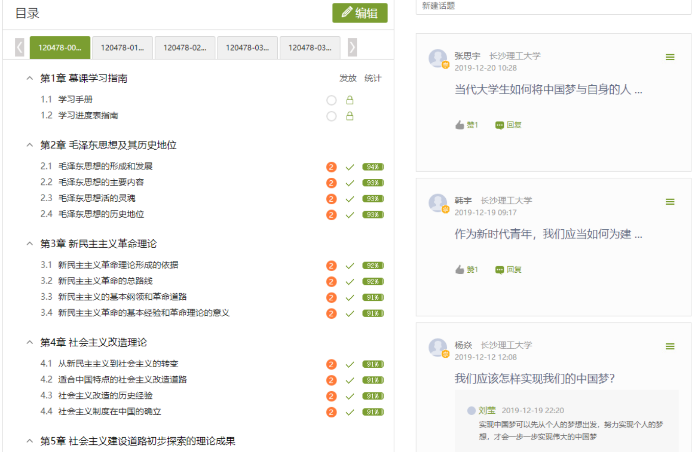 “本课程介绍了马克思主义中国化的两大理论成果:毛泽东思想和中国特色社会主义理论体系,是对大学生进行中国化马克思主义理论教育的重要课程。”卿定文教授2012年入选教育部全国高校优秀中青年思想政治理论课教师择优资助计划,也是本课程的负责人,他介绍,“本课程不仅适合在校本科生及专科生学习,也适合有一定文化基础的社会学习者学习。其他高校教师可以联系‘超星学银在线’创建班级,导入学生名册,即可进行线上教学和辅导。同时此次开课新增面向全网的开放班级,个人学习者扫描课程邀请二维码,便可加入开放班级学习,平台可为学习者发放课程学习证书。”