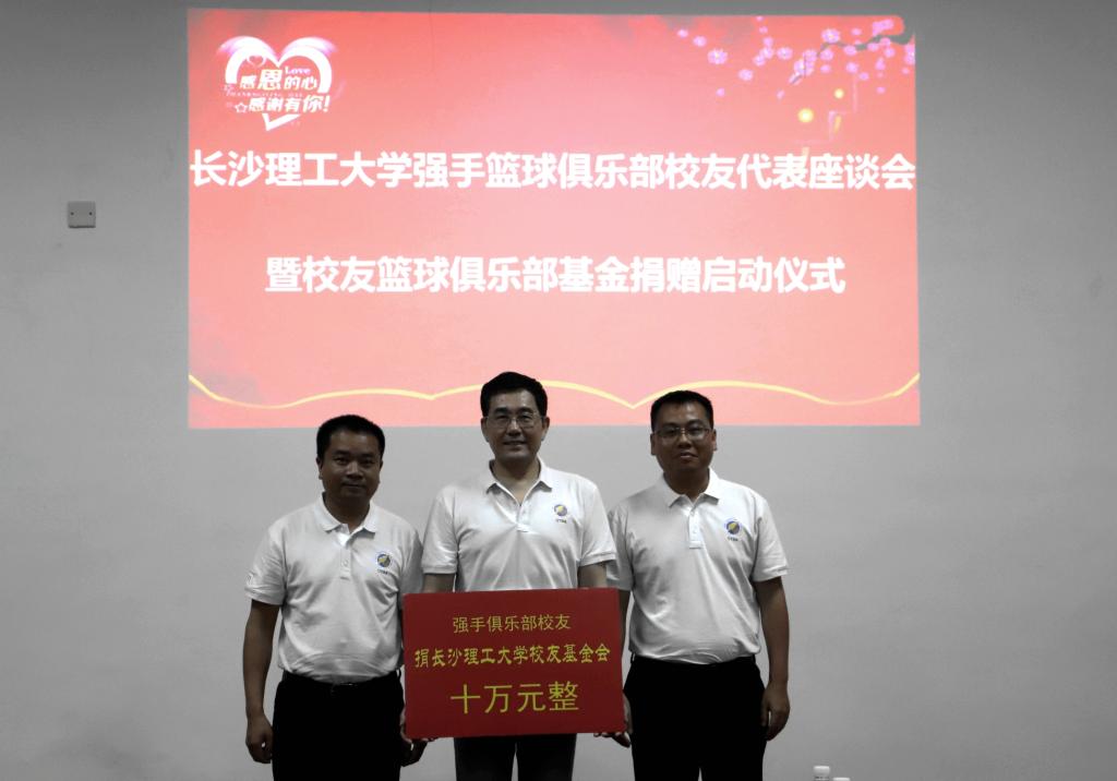 校友和企业家共捐赠10万元俱乐部建设启动基金,用于支持强手(校友)篮球俱乐部建设和爱好运动、阳光向上的贫困大学生。洪源渤代表基金会接受捐赠。