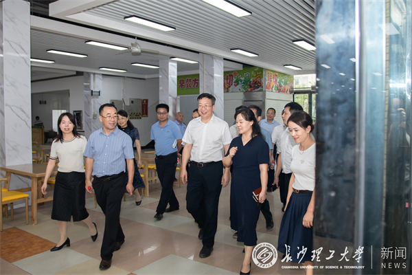 在金盆岭校区,付宏渊、曹一家一行仔细查看师生学习环境,详细询问有关学院教学、办公硬件设施有关情况,前往西苑学生宿舍检查宿舍卫生等有关工作,并深入学生食堂检查餐饮准备工作。
