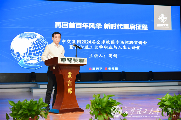 中交路建党委常委总会计师唐世连向长理学子发出诚挚邀请,欢迎广大毕业生加入中交集团。中交集团人力资源部(党委组织部)副总经理(副部长)高剑以《再回首百年风华 新时代重启征程》为题作招聘宣讲暨在线买世界杯平台职业人生大讲堂授课,从“重任在肩”“时代呼唤”“青春之歌”三个主题谈论中交集团的辉煌成就、中交百年奋斗史以及中交的央企担当。他诚邀长理学子与中交同行,为共同建设具有全球竞争力的“科技型、管理型、质量型”世界一流企业贡献青春力量。
