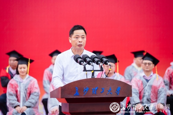 毕业生家长代表、物电学院电信2102班吴博凯同学的父亲动情讲述孩子在长理的蜕变,并代表全体家长向学校致谢,鼓励毕业生们勇敢奔赴属于自己的星辰大海。
