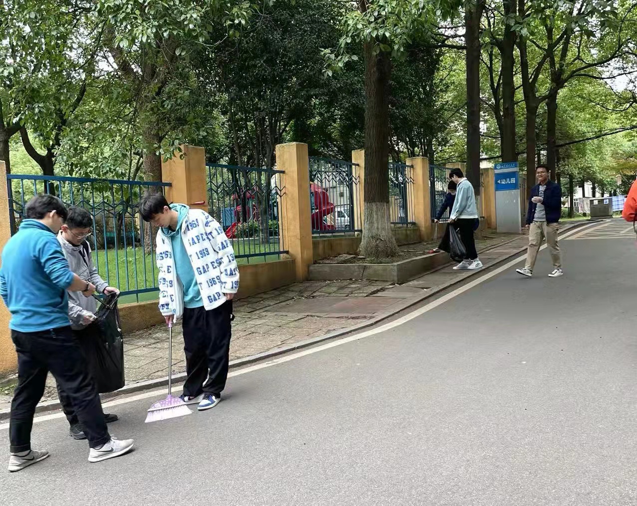 实践活动的各组同学在组长的带领下拿起了扫把、簸箕、铁钳、垃圾袋和一次性手套等清扫工具,分别打扫了校门东门至校训石(包含体育馆门口的小空地)、校训石至办公大楼(包含9教、10教两条小路及办公大楼门前空地)、办公大楼至幼儿园(指校史馆与办公楼之间的小路,一直到东苑教职工食堂与幼儿园门前空地)的落叶、烟蒂等零碎垃圾,并劝阻违规停车现象。