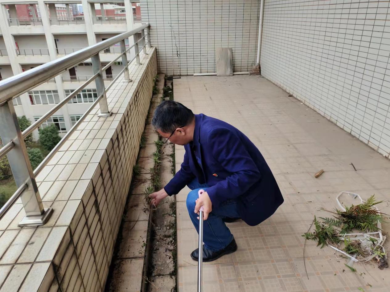 党日活动以小组的形式开展,教师党员带领各学生支部成员分别对理科楼和弘毅轩一栋开展了清除清扫工作。师生党员协力对理科楼周边区域以及各楼层进行了清扫,并安排学生党员干部值班引导车辆有序摆放;弘毅轩一栋周边区域的草坪杂草丛生,师生党员对杂草进行了一次深度的清除打扫,并安排值班人员整理摆放了弘毅轩周边的学生电动车。