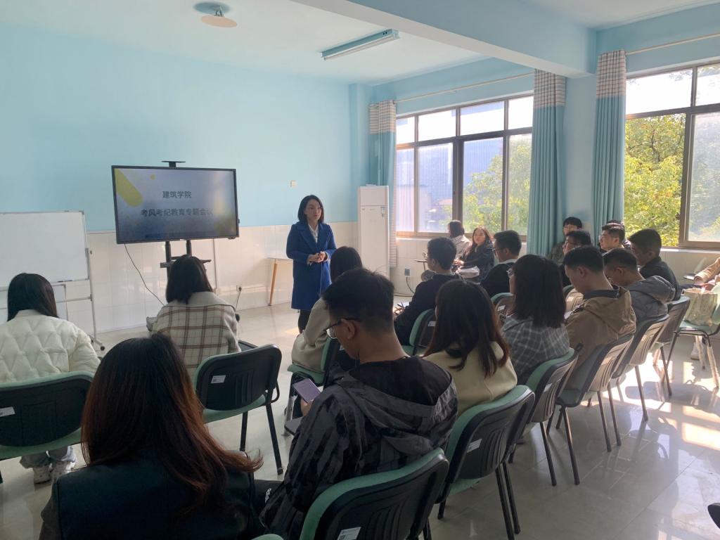 10月15日,建筑学院在金盆岭小校区16教召开了严肃考风考纪专题学习班会,会议由学工办周芳主持,建筑学院全体研究生参会。
