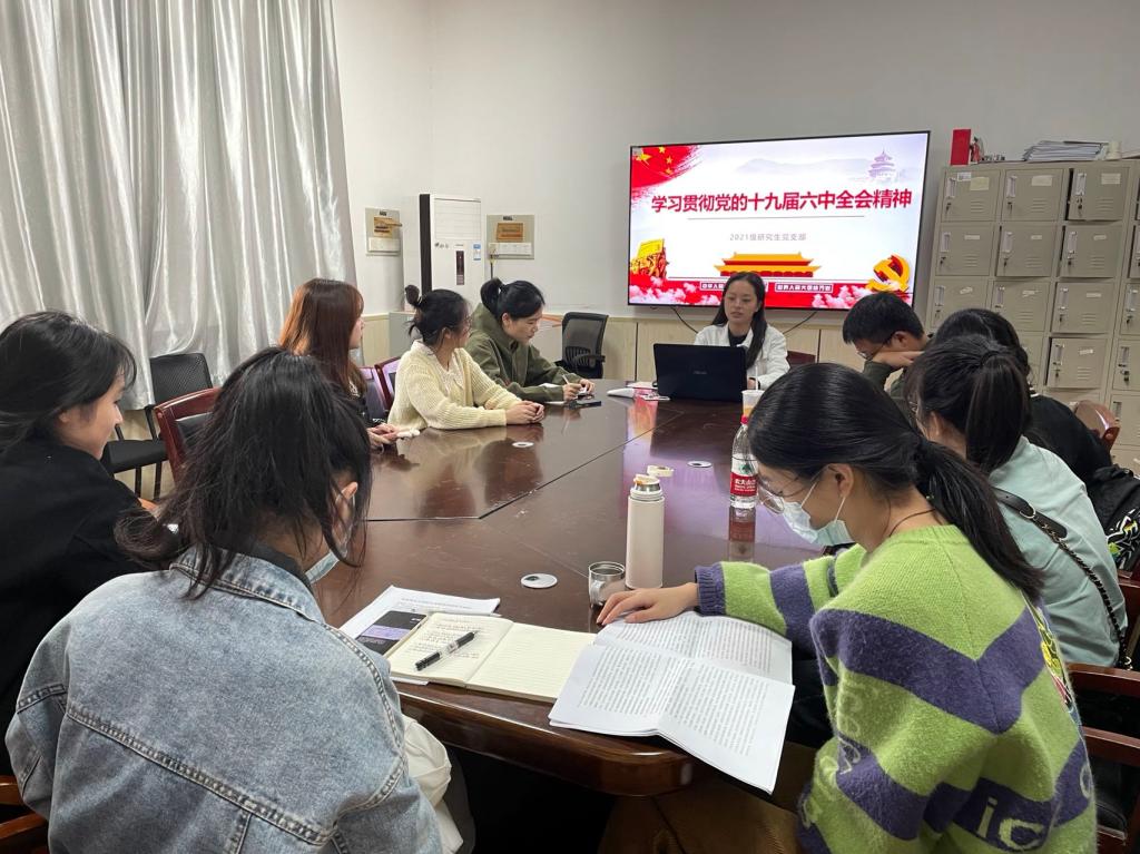 为了更好地学习领悟党的十九届六中全会的内容,2021级研究生党支部于11月19日下午在云塘校区召开支部大会,集中深入学习党的十九届六中全会精神。此次支部大会由支部书记阮曼主持,支部全部党员按时到会。