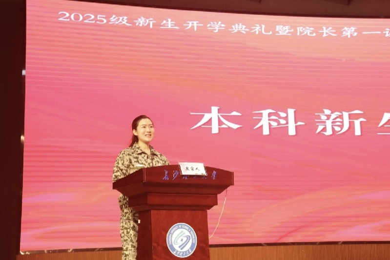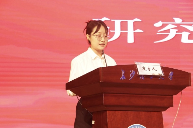 随后,师生代表依次发言。在校生代表鹿津恺分享:“提前熟悉校园,课堂专注比期末突击高效,参与活动要锚定目标不跟风。”班主任代表冯萍提到:“本科生要主动探索,研究生要深耕创造,AI时代批判思维不可替代。”研究生代表曹欣然谈及备考坚持,立志将聚焦湖南“三高四新”开展科研;本科新生代表王思阳表达了扎实学习、积极实践的决心。