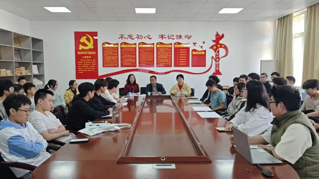 10月24日下午,电气学院电卓2301班在云塘校区工一B309会议室举行“深化专业认知·赋能未来发展”主题班会。学院党委书记丁丹、党委副书记周巍、班主任岳雨霏及全体同学齐聚一堂,共话成长蓝图。会议由23级辅导员熊文娟主持。