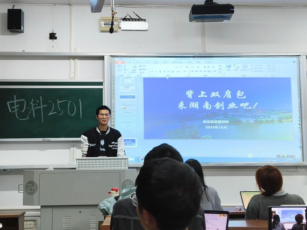 近日,物电学院组织召开“背上双肩包,来湖南创业吧”主题班会。全体同学积极参与,深入学习创业政策。