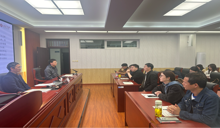 林锋立足马克思恩格斯经典文本,围绕“马克思恩格斯‘无产阶级’概念的阐释及发展”这一主题进行系统阐释。他从问题意识出发,梳理了当前学界关于“无产阶级”概念的相关认知与研究争议;随后,他深入文本,精准阐释了马克思恩格斯“无产阶级”概念的核心内涵与本质规定,还原了概念的原初语境与理论逻辑;最后,他结合当代社会发展实际,系统梳理了马克思恩格斯“无产阶级”概念的现代发展与理论延伸,探讨了其在新时代的理论价值与实践意义。讲座结束后,在场同学围绕相关理论问题积极提问,林锋逐一进行了细致解答。