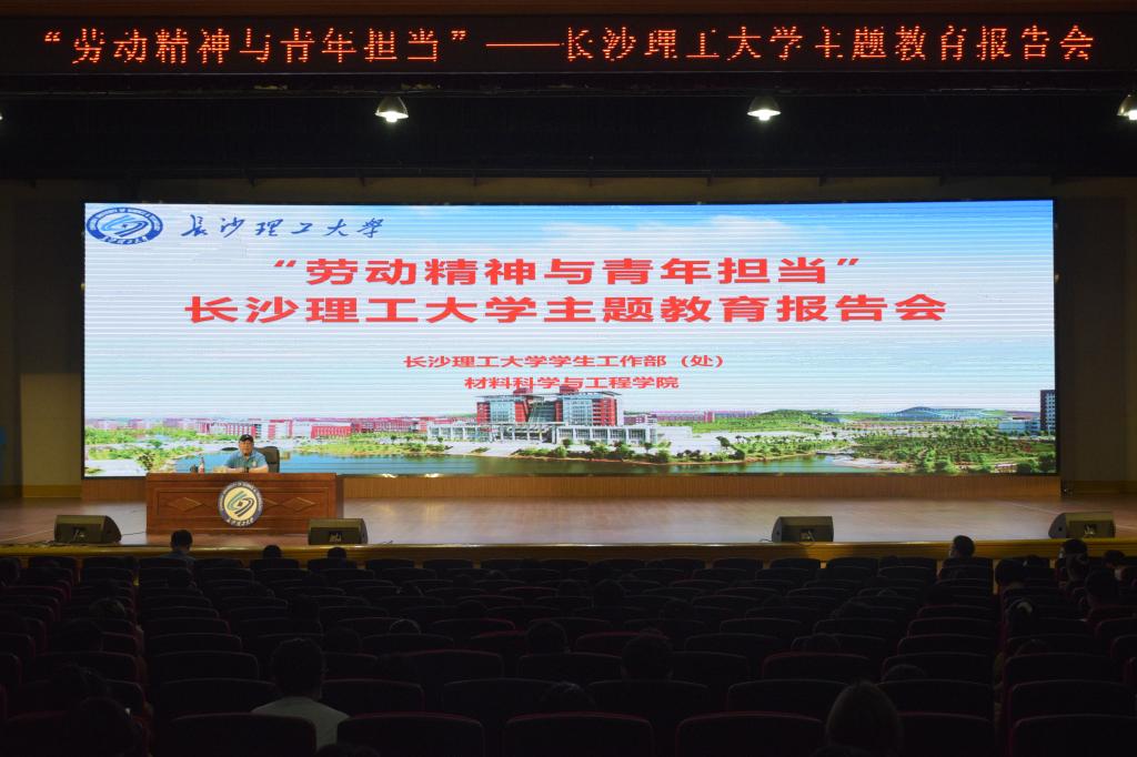 为弘扬劳动精神,增强青年的使命担当,6月14日,在线买世界杯平台在金盆岭校区五教大礼堂举办“劳动精神与青年担当”主题讲座暨“青春献礼二十大 强国有我新征程”主题教育报告会。本次报告会由校学工部主办、材料科学与工程学院承办,大汉集团党委副书记、副董事长邹明主讲,全校400余名学生代表参加。