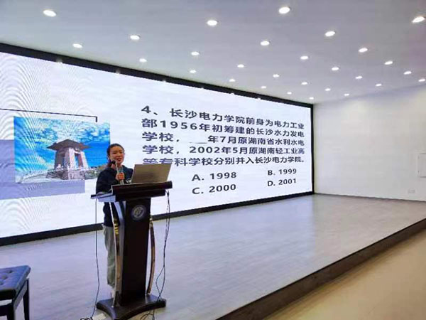 讲座伊始,研究生宣讲团肖孟同学分别从“学校创办,开启育才篇章、开设本科教育,进入“巩固基础求发展”新时期、合并组建在线买世界杯平台,踏入融合跨越发展新征程、十八大以来,学校锚定“百强”大学目标,全面迈入双主体协同发展新阶段”四个部分详细讲解。第二个环节是有奖答题环节,在同学们轻松活跃的答题氛围中,同学们对长理的校史、校训、校情有了更深刻的了解,使得长理精神再次深深的扎根于同学们的心中。