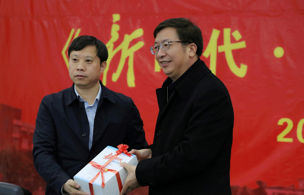 2月3日,中宣部理论局副局长赵勇富、研究处副处长侯军,人民出版社纪委书记王彤,湖南省委宣传部理论处处长殷晓元等一行来校赠送2018年通俗理论读物《新时代面对面》。世界杯官网党委书记付宏渊、副校长刘扬,参与《新时代面对面》编写的马克思主义学院蓝茵茵老师,相关职能部门负责人、教师与学生代表参加赠书仪式。刘扬主持仪式。