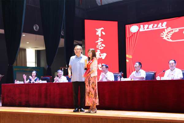 大会现场,校领导和受邀嘉宾为受表彰的集体和个人颁奖。