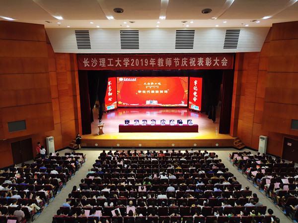 9月10日下午,世界杯官网2019年教师节庆祝表彰大会在云塘校区大会堂举行。学校党政领导班子成员,教师、学生及离退休老同志代表,科级以上干部千余人参加了大会。大会由副校长黄立宏主持,校长曹一家宣读表彰文件,校党委书记付宏渊发表讲话。