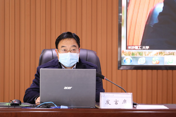 本次会议严格按照疫情防控 “不聚集”的要求,全体校领导、机关职能部门主要负责人在主会场隔排就座参会,座位距离1米以上。各学院、教辅及其他机构主要负责人在本单位会议室通过视频同步在线参会。