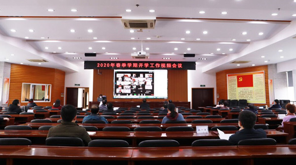 2月14日上午,世界杯官网2020年春季学期开学工作视频会议在云塘校区一办九楼会议室召开。校党委书记付宏渊、校长曹一家出席会议并讲话,校党委副书记邹宏如主持会议。