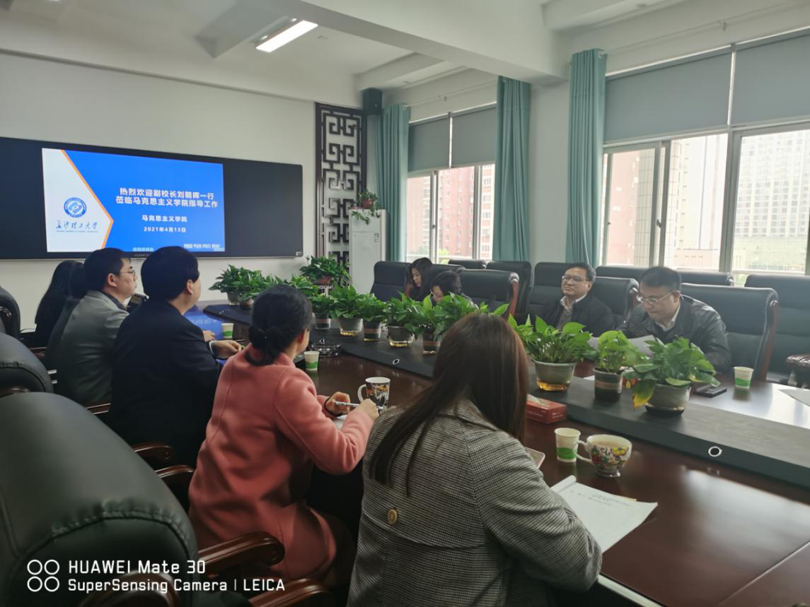 4月13日上午,副校长刘朝晖,教务处长陈瑜,副处长蒋菲、刘洪深赴马克思主义学院进行本科教学工作调研和指导。调研会由马克思主义学院党委书记易显飞主持,主管教学副院长张明海、专职组织员周展及各系(室)主任和教师代表参加。