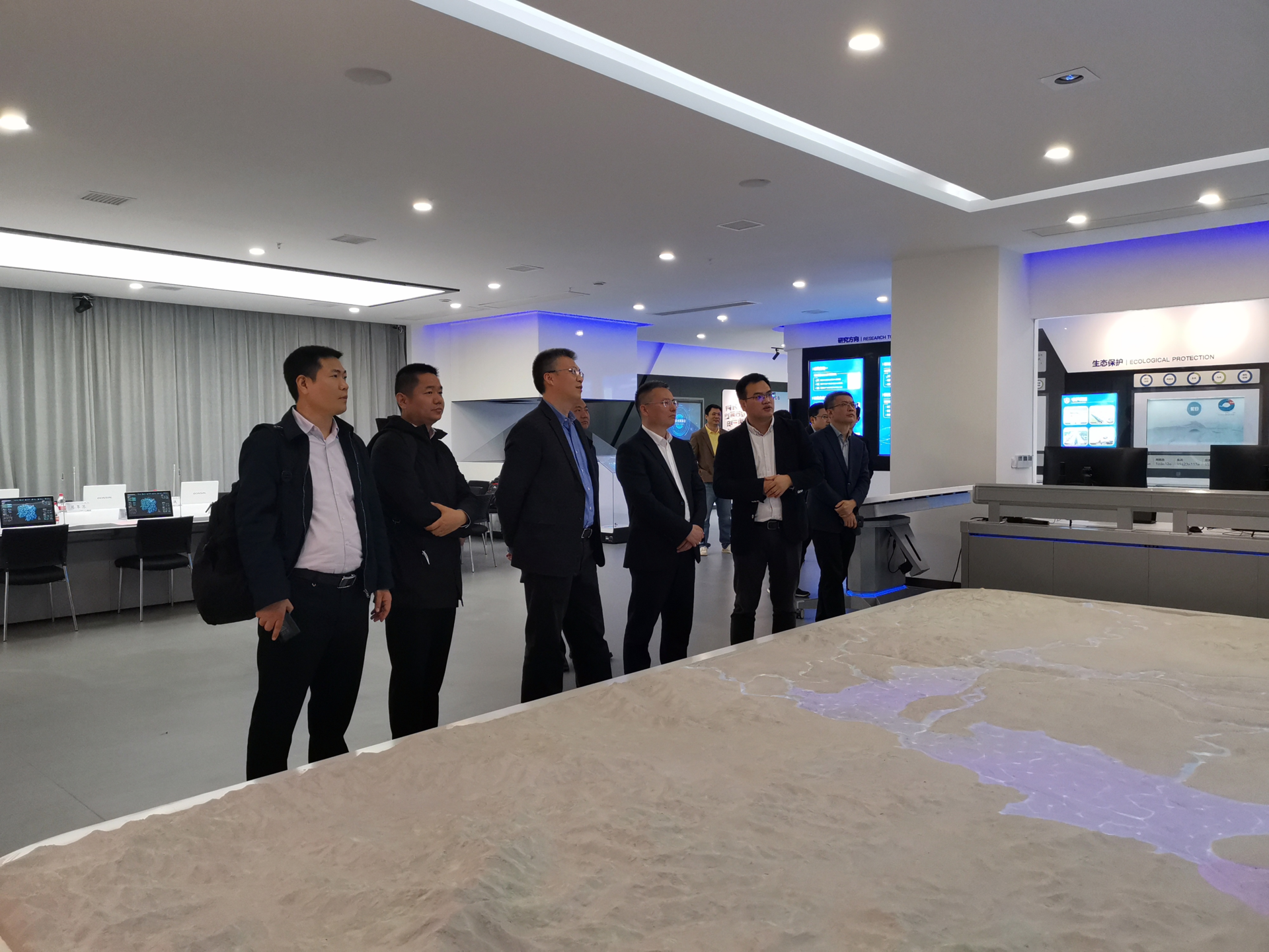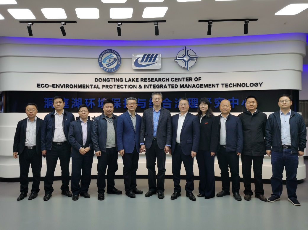 刘永满一行首先参观了水科学与水灾害防治湖南省重点实验室,随后来到洞庭湖水环境治理与生态修复湖南省重点实验室,详细了解了洞庭湖实验室的建设背景、建设历程以及发展目标、研究方向以及智慧洞庭综合信息化平台等方面。