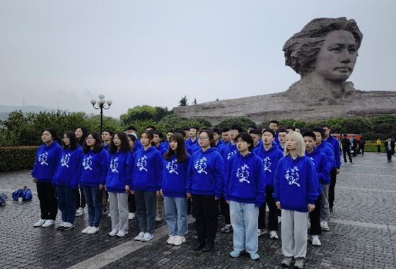 4月18日下午,水利工程学院水电与水文特岗班全体学生在班主任蒋中明和辅导员王正博的带领下步行前往长沙橘子洲头开展了“我为党来送祝福”研读和寄语祝福活动。