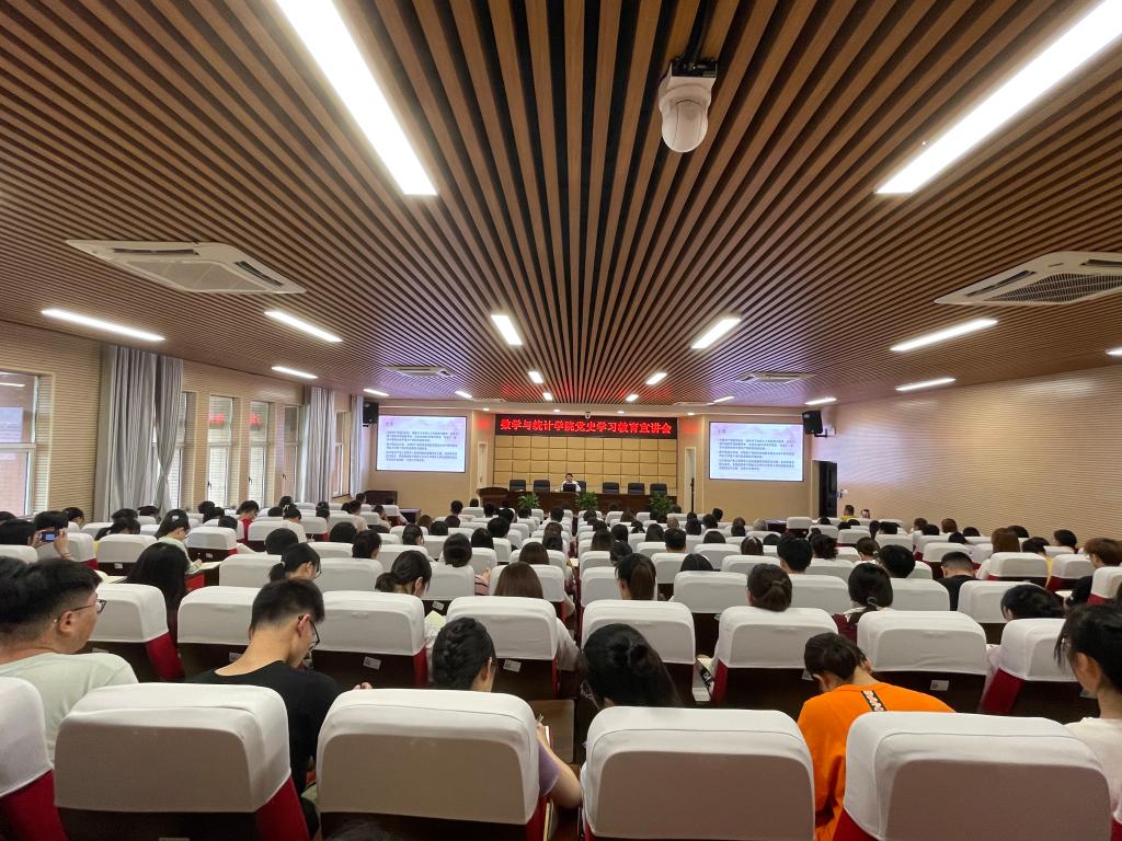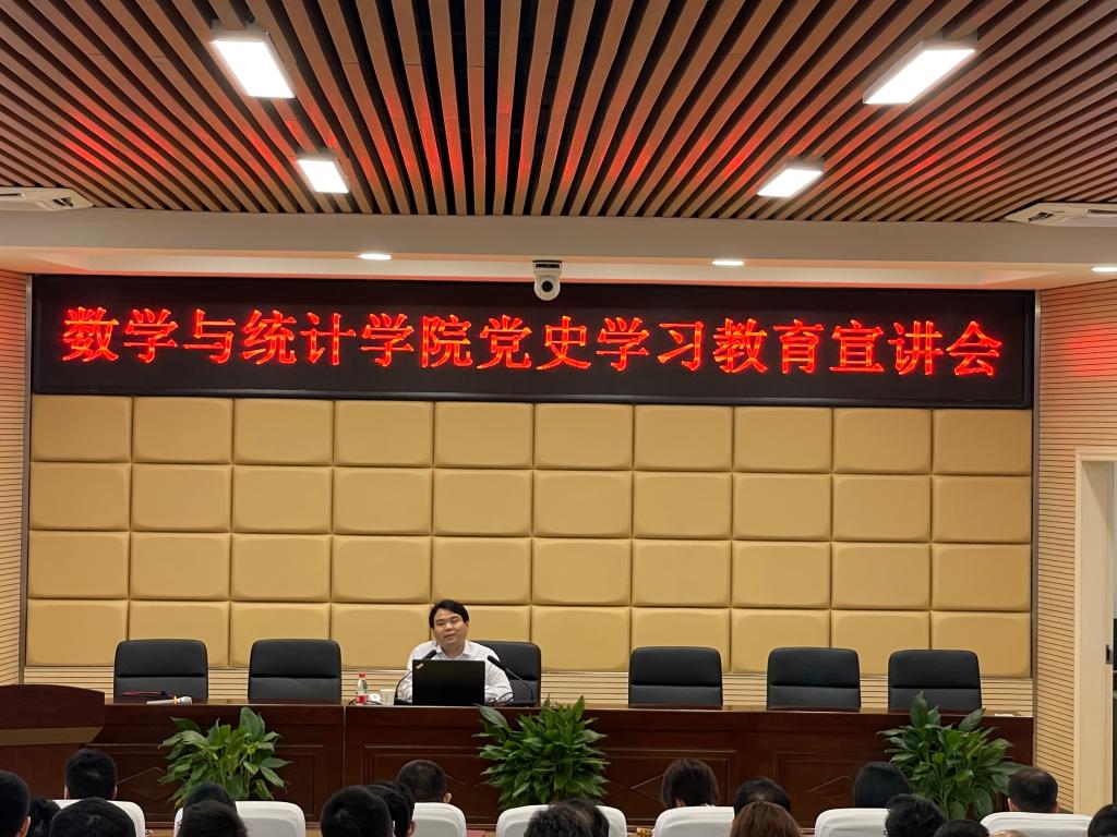 为让党史学习教育走深走实,5月11日下午,数统学院党委特邀马克思主义学院党委书记易显飞作党史学习教育专题理论宣讲。宣讲会由学院党委书记张宏伟主持,学院全体师生党员共计182人参加。