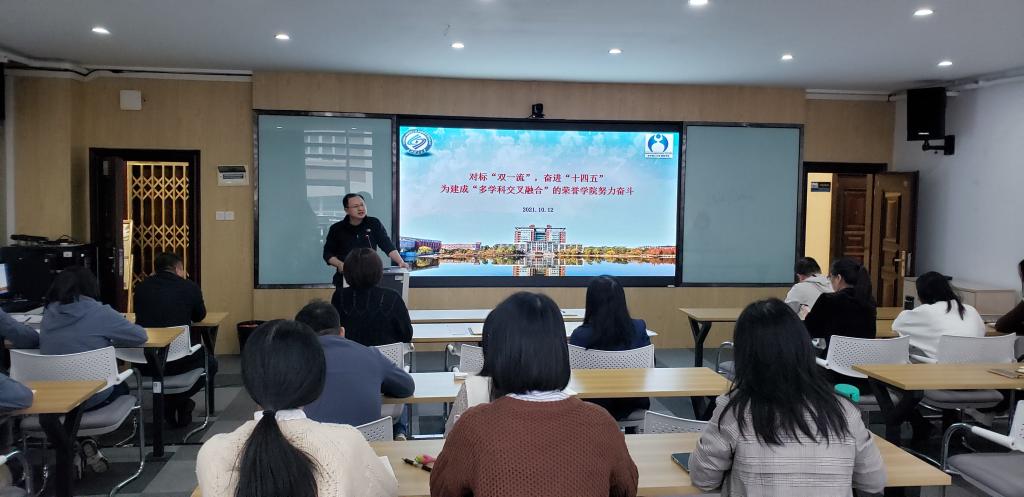 会上,院长吴迪龙作了《对标“双一流”、奋进“十四五”,为建成“多学科交叉融合”的荣誉院校而奋斗》工作报告。报告阐述了学院发展现状,明确了发展思路、定位及目标,提出以夯实国际化人才培养为立院之本、以推动学科专业交叉融合为强院之路,实施强化党建引领、高规格搭建教改班人才培养平台、中外合作办学项目“规模+质量”双提升工程、来华留学生培养提质增效、夯实学科专业建设五大举措,推进学院高质量内涵式发展。随后,学院各分管领导分别就教学工作、中国学生管理与学风建设、来华留学生培养等方面具体情况与下一步安排进行了介绍。