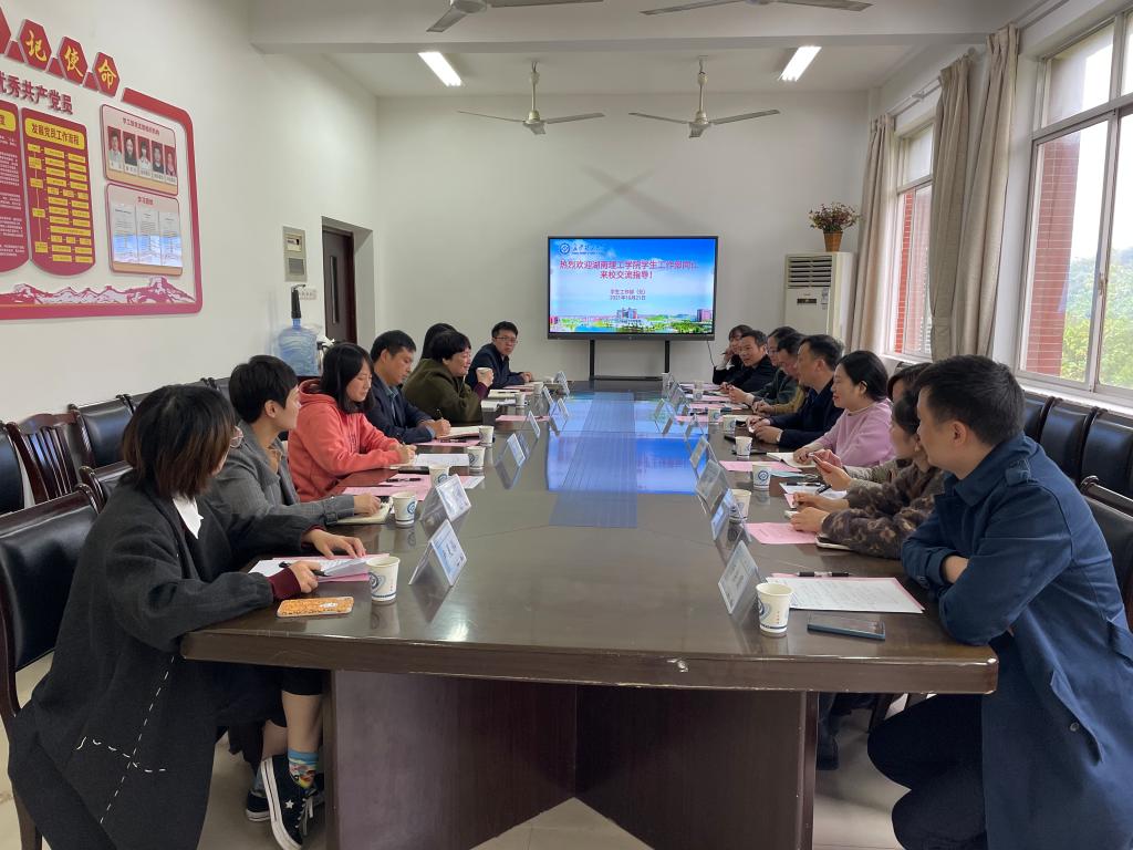 10月21日上午,湖南理工学院党委学工部副部长毛伟、心理健康教育中心主任李一飞一行来世界杯官网调研心理健康教育工作。调研交流会在云塘校区学工部会议室举行,学工部部长邱国良主持会议,心理中心主任龚勋、化学学院党委副书记陶双、文新学院党委副书记刘莎、计通学院党委副书记王觊婧、心理中心专职老师参加。