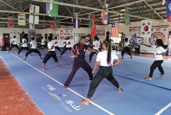 中国武术在利比里亚有着广泛的群众基础,为筹开此次武术特色班,利大孔院做了大量的前期准备和宣传工作。武术特色班招生信息一发布,便有众多孔院学员和武术爱好者踊跃报名。根据线下防疫要求,此次武术特色班暂开1个班,限招20人。开班仪式后,Pewee Russian为孔院学员详细讲授少林拳相关知识,示范基本动作和要领,并现场表演了凌厉无比的少林拳。精彩绝伦的表演赢得了在场学员的阵阵掌声和尖叫声,他们被少林功夫所折服,深深体会到了少林功夫名不虚传。近两个小时的武术特色班课堂气氛热烈,效果极佳。