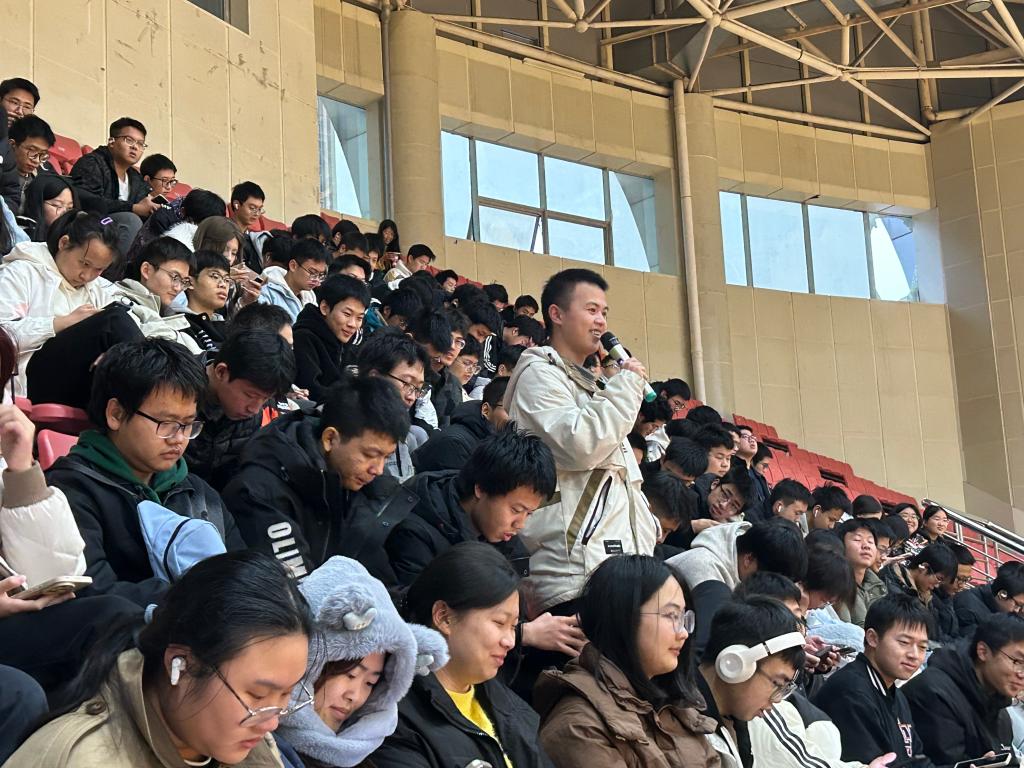 中场休息期间,师生互动环节点燃全场。在轻松愉快的抢答与自由提问中,同学们围绕专业学习、兴趣发展等话题踊跃发言。“学好电子专业最需具备哪些关键品质”等问题引发热烈共鸣,面对同学们的困惑,在场教师结合自身成长经历与教学经验耐心答疑。现场氛围温馨融洽,师生间的距离进一步拉近。