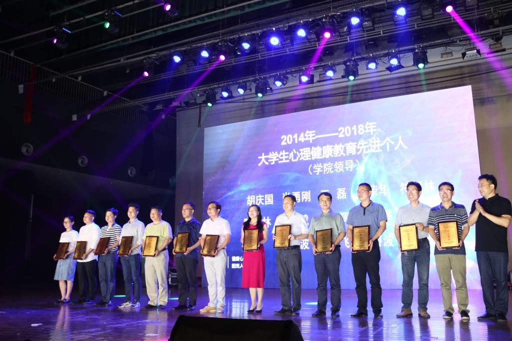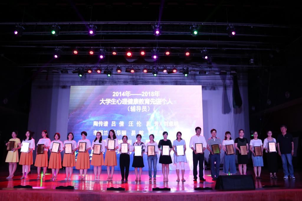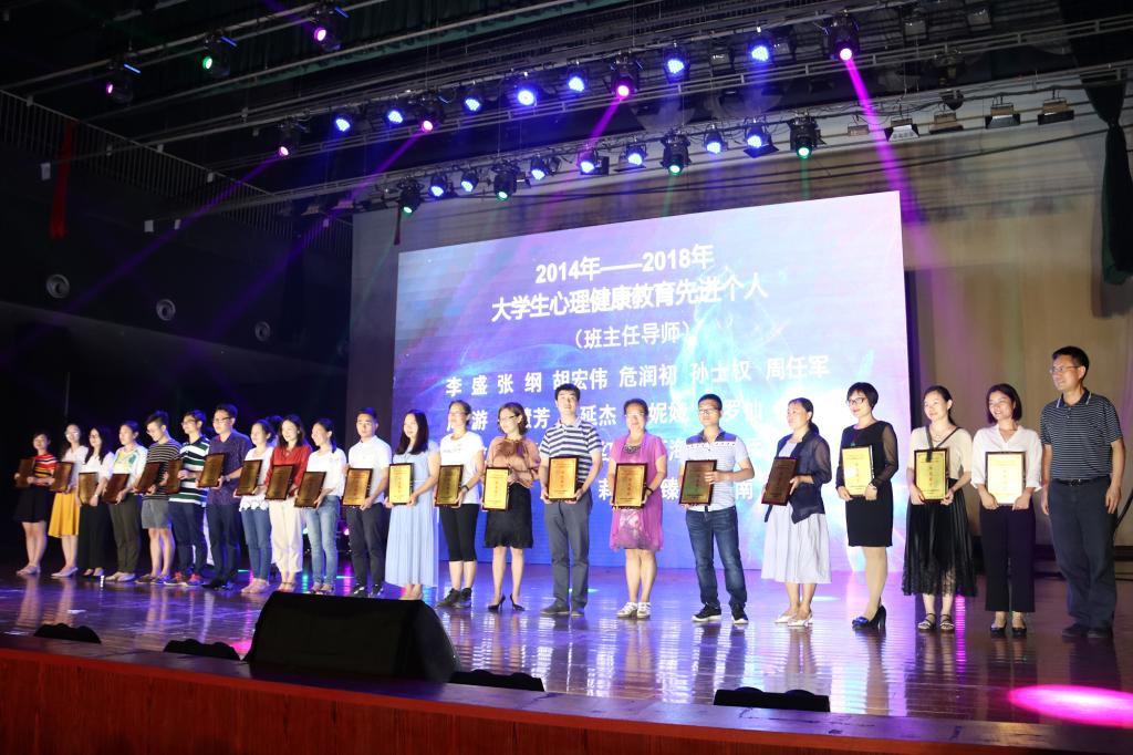 晚会上,授予10个学院“2014-2018年在线买世界杯平台大学生心理健康教育工作优秀集体”称号;授予13名二级学院领导、24名班主任和研究生导师、20名辅导员“2014-2018年在线买世界杯平台大学生心理健康教育工作先进个人”称号;同时还授予10个学院的朋辈心理互助组织“阳光团队”称号,107名朋辈心理互助员“阳光朋辈”称号。